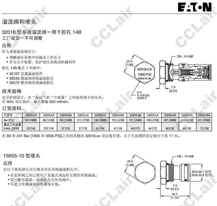 32018-CA,32018-EA,32018-GA,32018-JA,32018-LA,32018-NA,威格士-Vickers,溢流閥 |