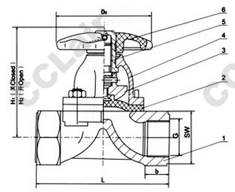 部件列表:1.閥體 2.隔膜 3.閥瓣 4.閥桿 5.閥蓋 6、手輪