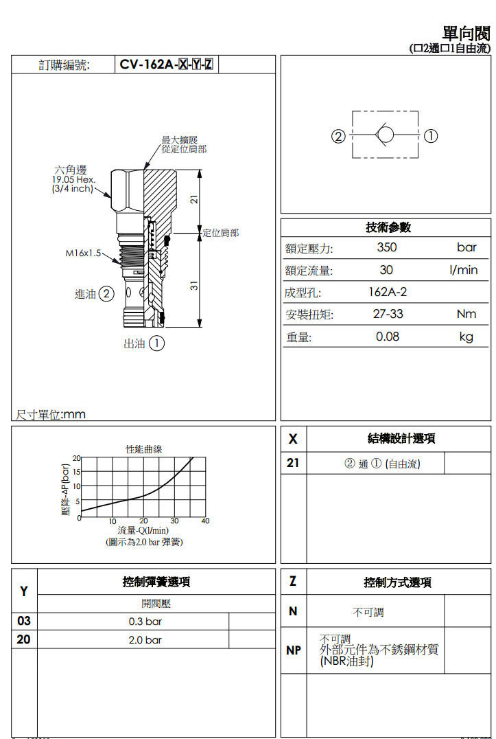 CV-162A-20-03-N,CV-162A-20-20-N,CV-162A-20-50-N,CV-162A-20-03-NP,winner單向閥