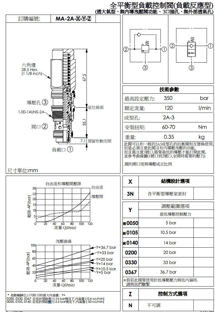 詳細信息 MA-2A-3N-0050-N,MA-2A-3N-0105-N,MA-2A-3N-0140-N,MA-2A-3N-0200-N,winner全平衡型負載控制閥
