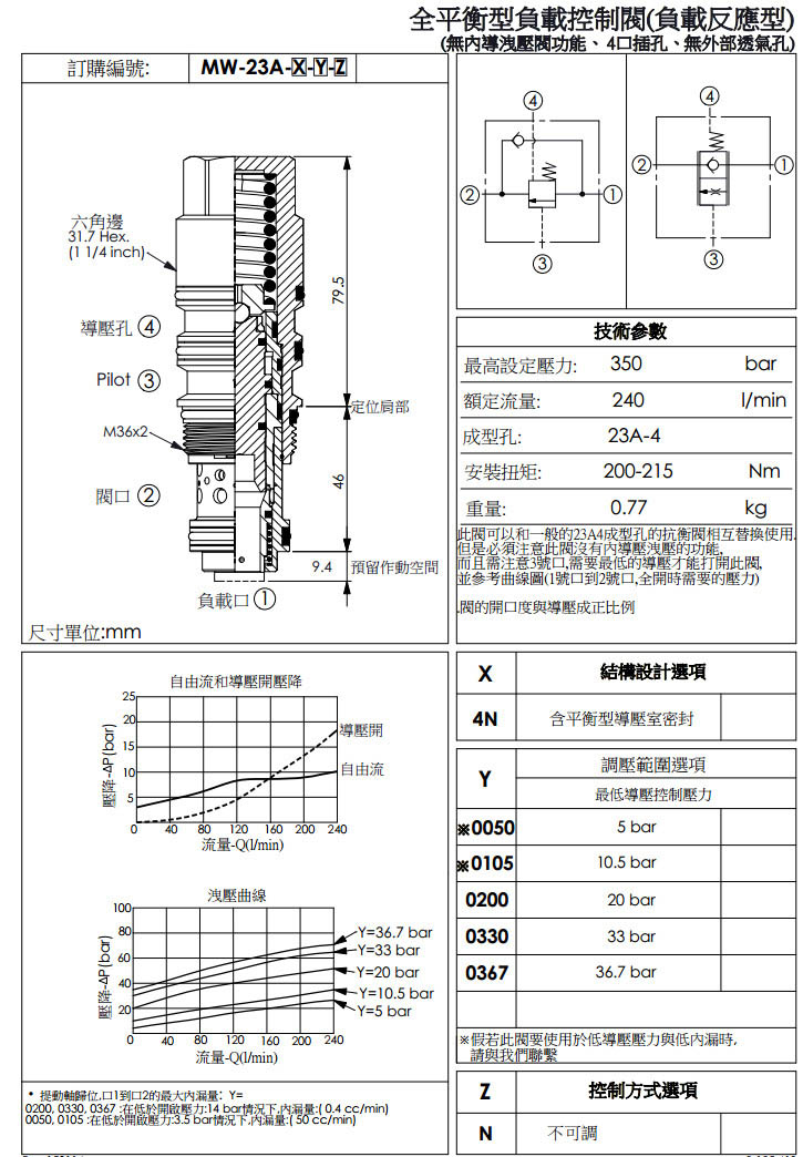 MW-23A-3N-0050-N,MW-23A-3N-0105-N,MW-23A-3N-0140-N,MW-23A-3N-0200-N,winner全平衡型負(fù)載控制閥