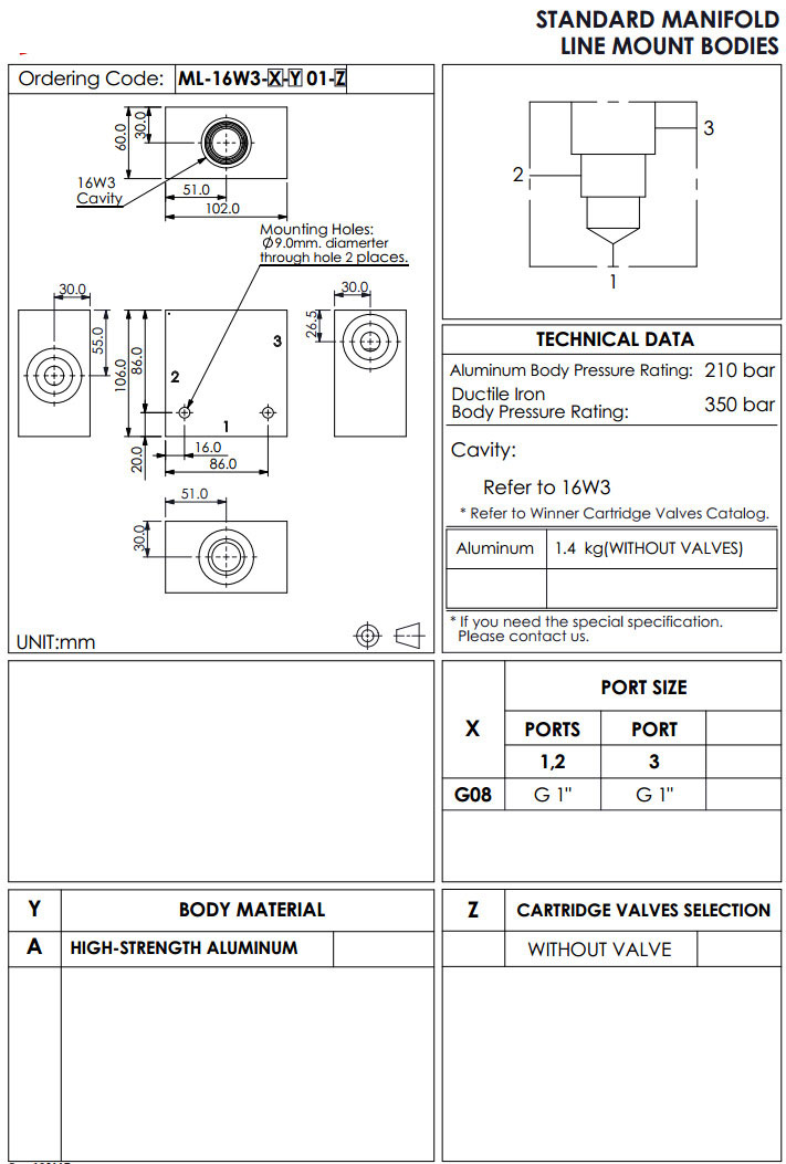 詳細信息 ML-16W3-G08-A01,winner標準配管式油路板