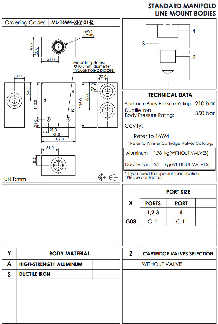 ML-16W4-G08-A01,ML-16W4-G08-S01,winner標準配管式油路板
