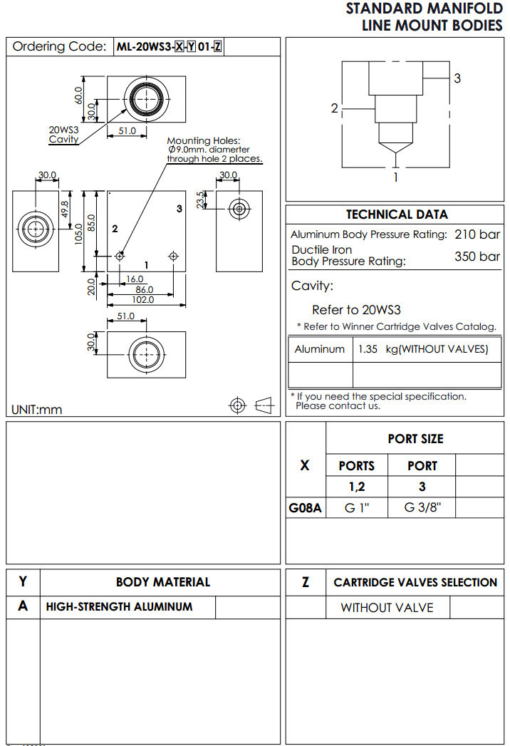 詳細(xì)信息 ML-20WS3-G08A-A01,winner標(biāo)準(zhǔn)配管式油路板