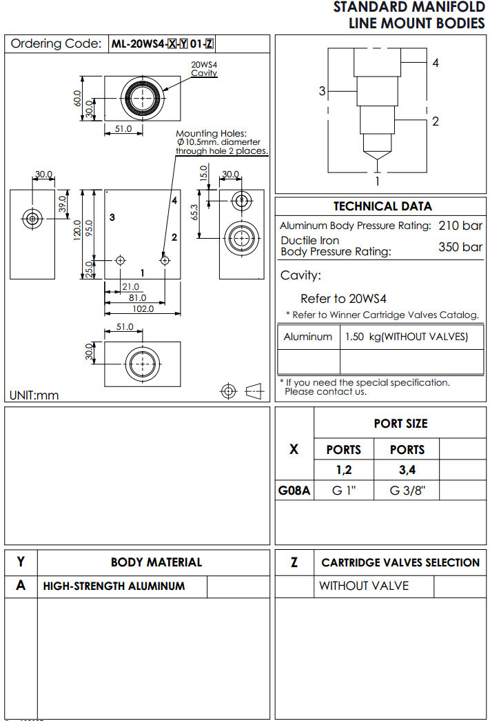 詳細信息 ML-20WS4-G08A-A01,winner標準配管式油路板