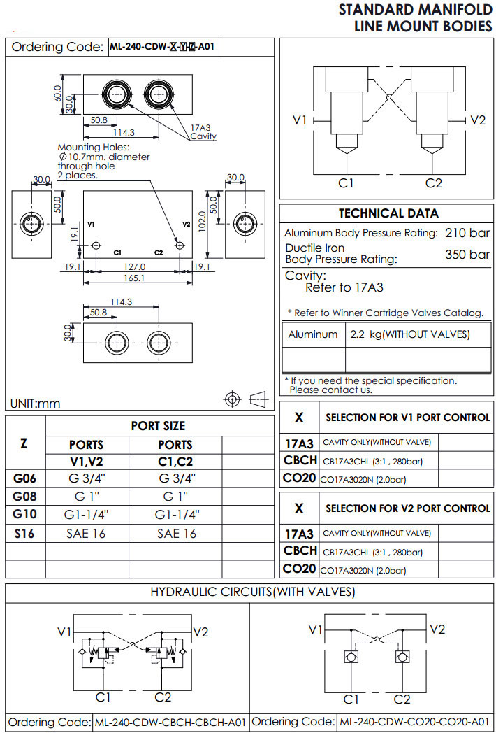 ML-240-CDW-17A3-17A3-G06-A01,ML-240-CDW-CBCH-CBCH-G06-A01,ML-240-CDW-CO20-CO20-G06-A01,winner標準配管式油路