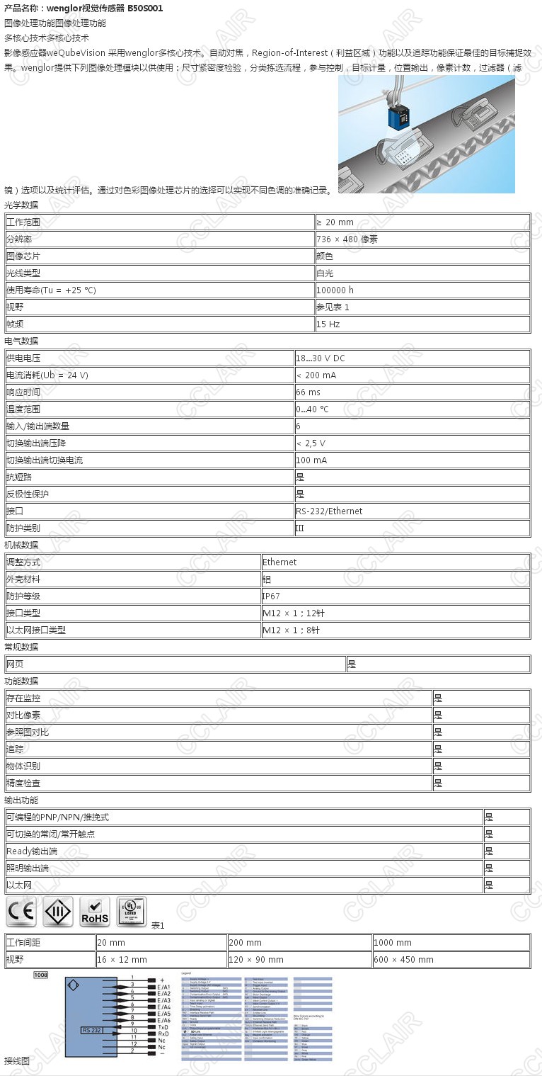 詳細(xì)信息 B50S001,wenglor視覺(jué)傳感器