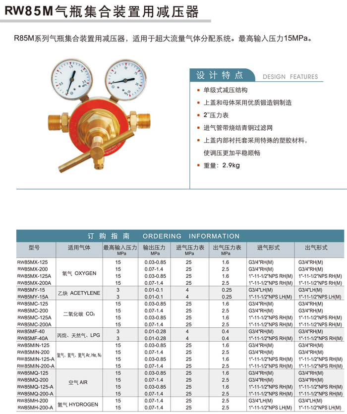 RW85MX-125,RW85MY-15,RW85MC-125,RW85MF-40,RW85MIN-125,RW85MQ-125,RW85MH-200,減壓器