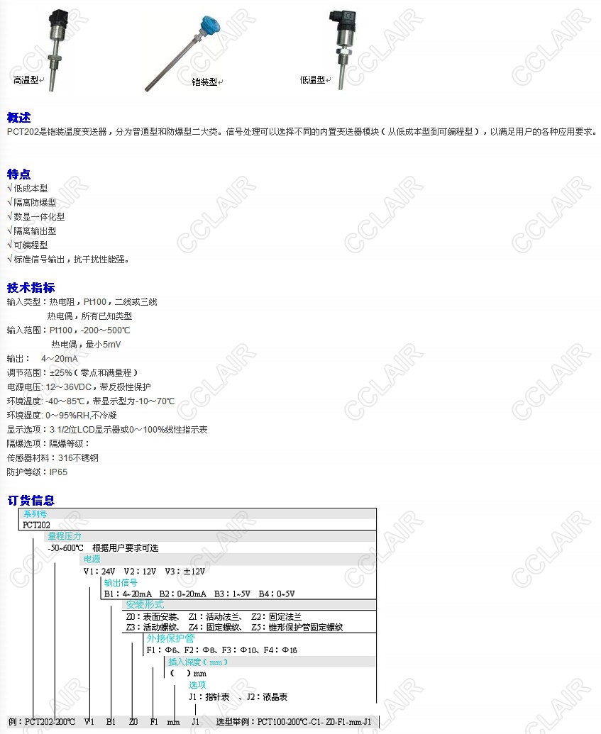 瀏覽次數(shù):445PCT202,鎧裝溫度變送器 |