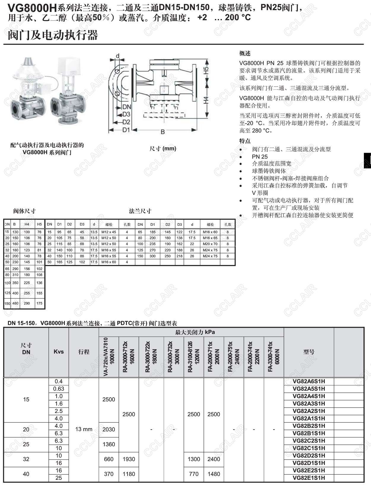 詳細信息 VG82A6S1H,VG82A5S1H,VG82A4S1H,VG82A3S1H,VG82A2S1H,VG82A1S1H,VG8000H,閥門及電動執(zhí)行器
