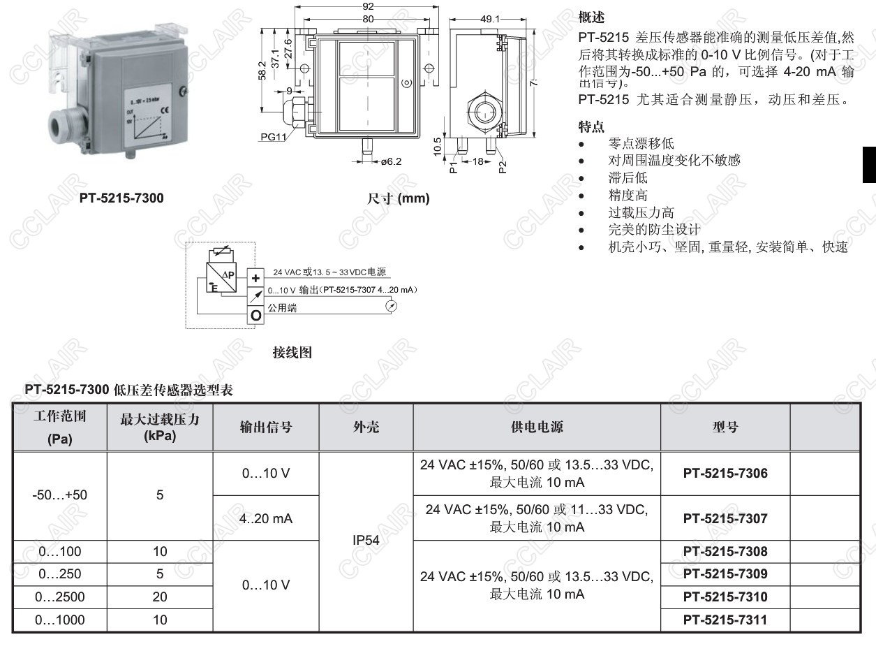 PT-5215-7306,PT-5215-7307,PT-5215-7308,PT-5215-7309,PT-5215-7300,低差壓空氣傳感器