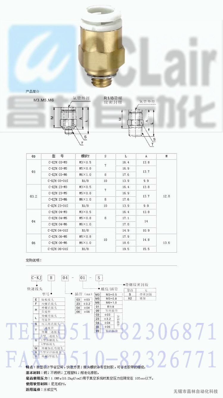 詳細信息 C-KJH23-M3,C-KJH23-M5,C-KJH23-01S,C-KJH23-M6,直通接頭,生產(chǎn)廠家,價格
