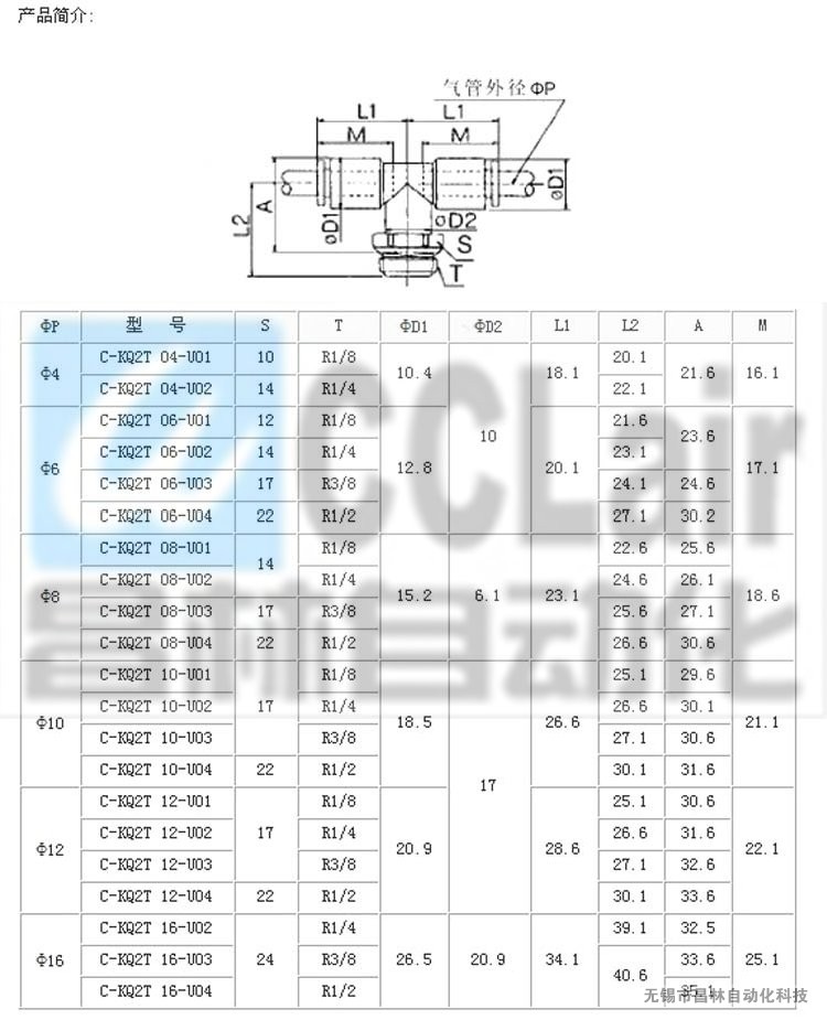 詳細(xì)信息 C-KQ2T16-U02,C-KQ2T16-U03,C-KQ2T16-U04, 外螺T型接頭,生產(chǎn)廠家,價(jià)格