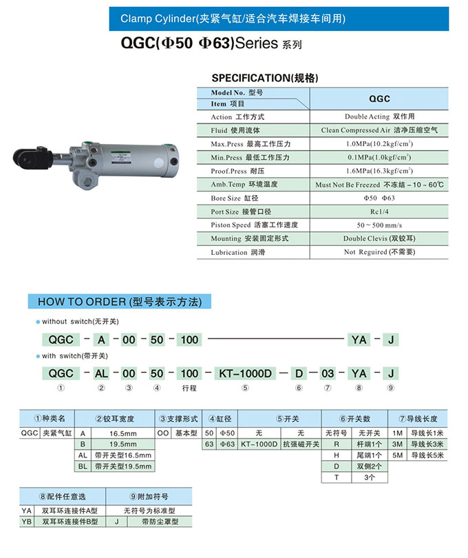 詳細(xì)信息 QGC-A-OO-50,QGC-A-OO-63,QGC-B-OO-50,QGC-B-OO-63,QGC-AL-OO-50,QGC-BL-OO-63,圓形夾緊氣缸