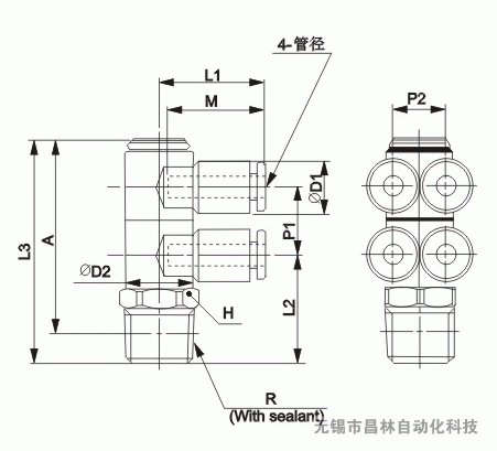| MODEL | 管徑 | R | H | φD1 | φD2 | L1 | L2 | L3 | A | M | P1 | P2 | 重量 |