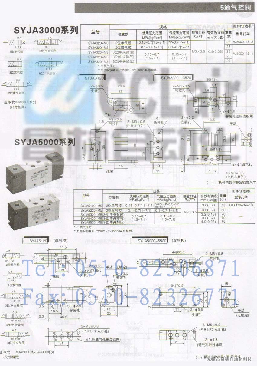 SYJA5120-M5,SYJA5220-M5,SYJA5320-M5,SYJA5420-M5,SYJA5520-M5,氣控閥