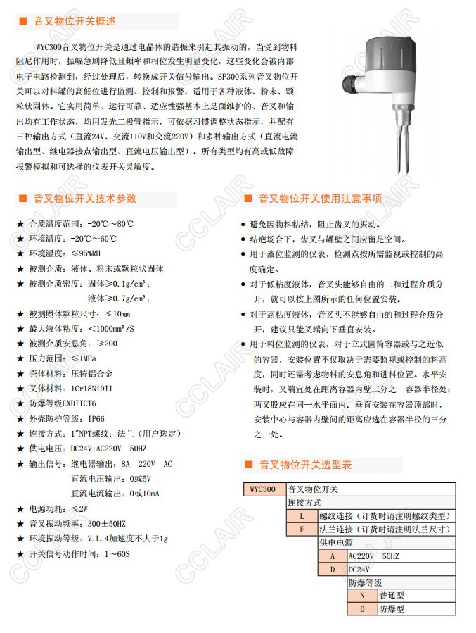 WYC300-LAN,WYC300-LAD,WYC300-LDN,WYC300-LDD,WYC300音叉物位開關(guān)