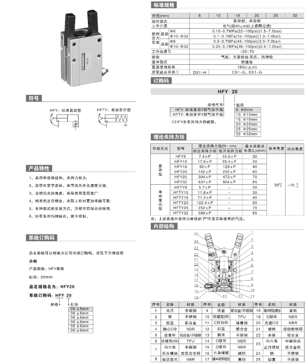 亞德客型氣動手指氣缸 HFY-10,HFY-16,HFY-20,HFY-25,HFY-32,HFTY-10,HFTY-16,HFTY-20,HFTY-25,HFTY-32