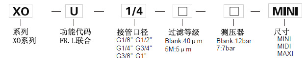 | 使用壓力:12bar,5µm | XOU-1/8-5M-MINI | XOU-1/4-5M-MINI | XOU-3/8-5M-MINI | XOU-3/8-5M-MIDI | XOU-1/2-5M-MIDI | XOU-3/4-5M-MIDI | XOU-3/4-5M-MAXI | XOU-1-5M-MAXI | |