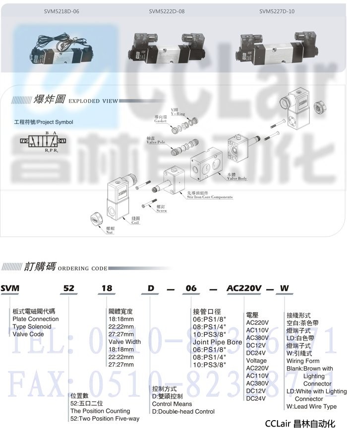 詳細(xì)信息 SVM5222D-06,SVM5218D-M5,SVM5227D-08,五口二位電磁閥