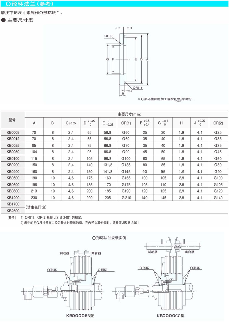 詳細(xì)信息 KB0008,KB0012,KB0025,KB0050,KB0200,KB0400,KB0500,KB0600,KB0800,KB1200,KB2500,薄型氣動離合制動器 KB1700,KB0100,