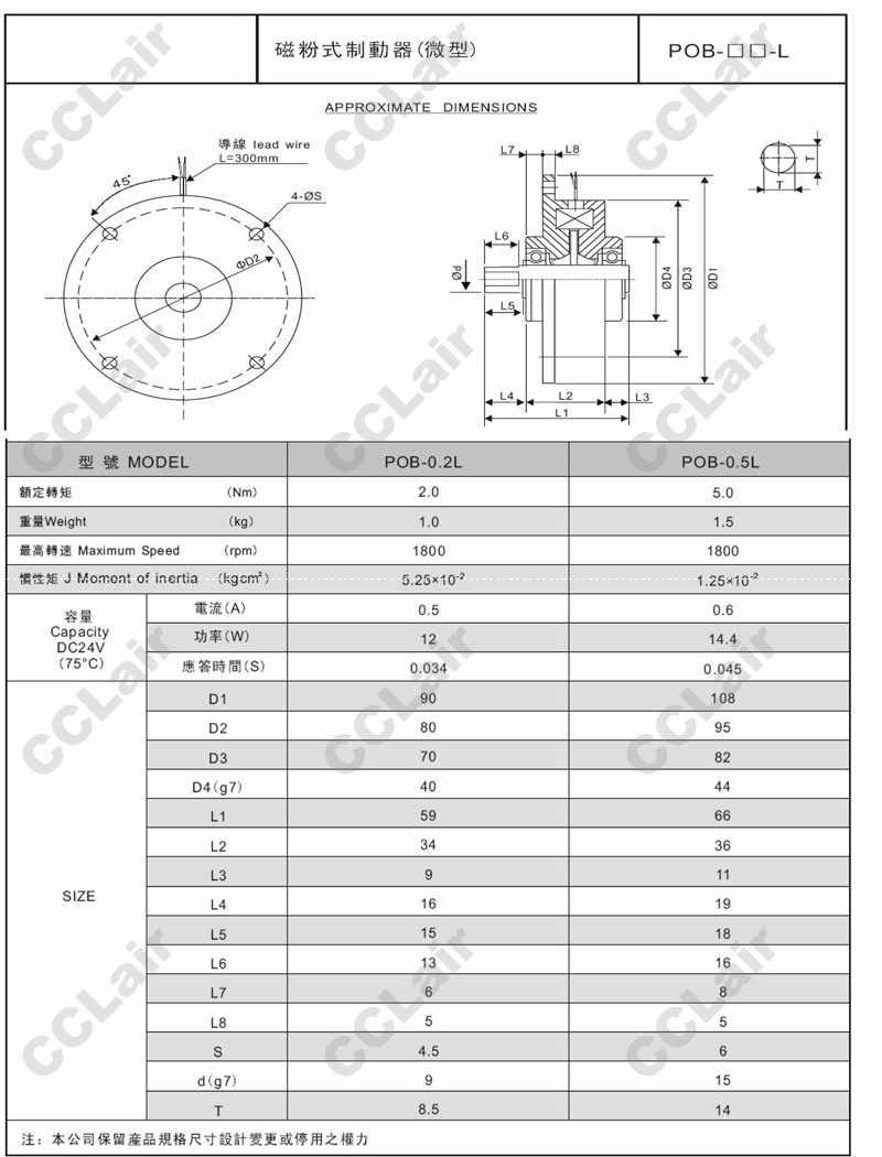 詳細(xì)信息 POB-0.2L,POB-0.5L,微型磁粉式制動(dòng)器