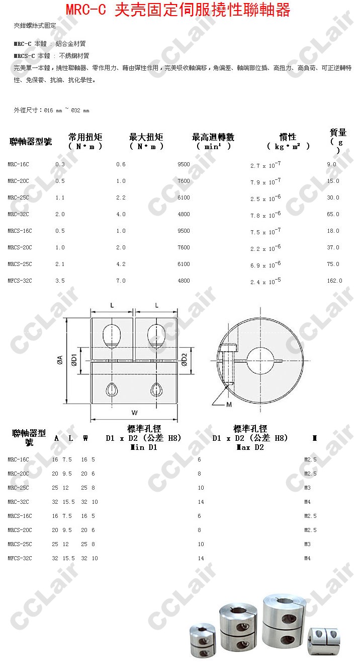 詳細(xì)信息 MRC-16C,MRC-20C,MRC-25C,MRC-32C,MRCS-16C,MRCS-20C,MRCS-25C,MRCS-32C,夾緊固定伺服撓性聯(lián)軸器