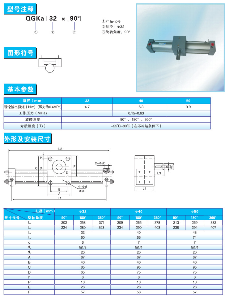詳細(xì)信息 QGKa32*90,QGKa40*90,QGKa50*90,QGKa32*180,QGKa40*360,QGKa50*360,擺動(dòng)氣缸