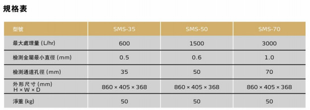 詳細(xì)信息 SMS-35,SMS-50,SMS-70,金屬偵測(cè)分離器