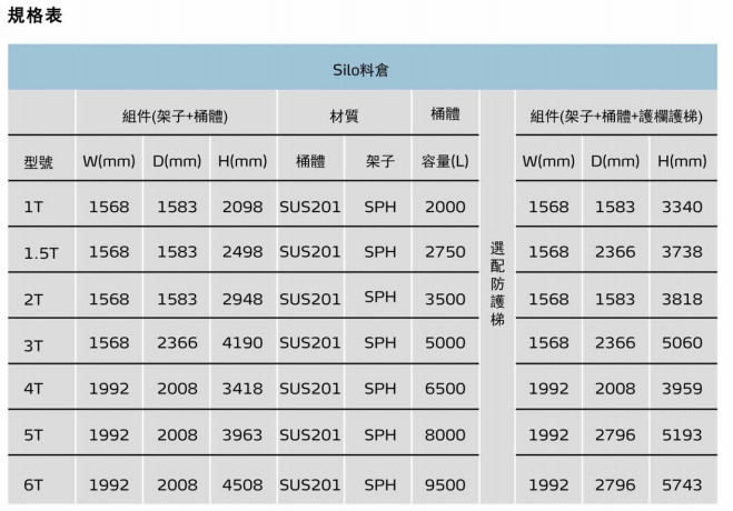 SS-1T,SS-1.5T,SS-2T,SS-3T,SS-4T,SS-5T,SS-6T,新型料倉(cāng)