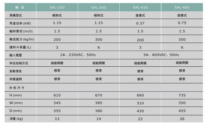 SAL-330,SAL-360,SAL-430,SAL-460,直結(jié)式真空填料機(jī)
