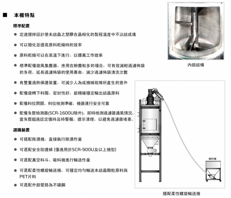 詳細(xì)信息 SCR-160U,SCR-450U,SCR-900U,SCR-1600U,SCR-2500U,PET結(jié)晶機(jī)