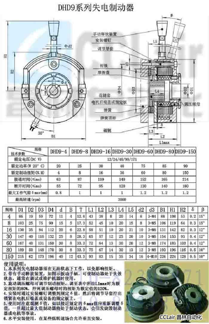 DHD9-4,DHD9-8,DHD9-16,DHD9-30,DHD9-60,DHD9-80,DHD9-150,電磁失電制動器