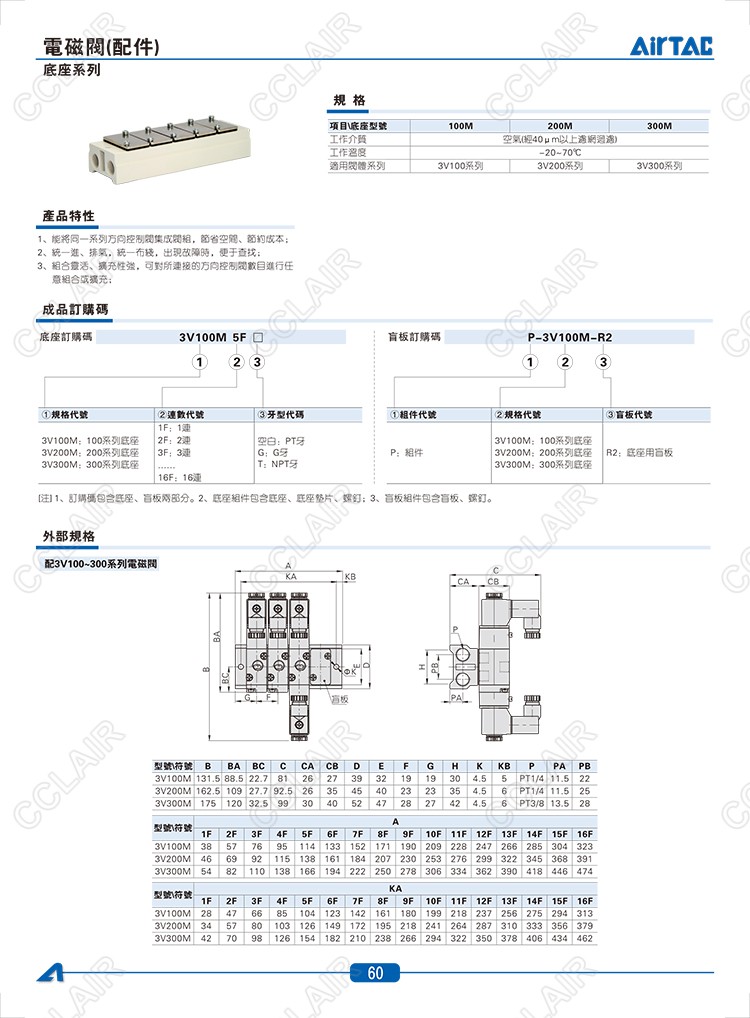AIRTAC亞德客 電磁閥底座3V100M-1F,3V100M-2F,3V100M-3F,3V100M-4F,3V100M-5F,3V100M-6F 3V100M-7F,3V100M-8F,3V100M-9F,3V100M-10F,3V100M-11F,3V100M-12F,3V100M-13F,3V100M-14F,3V100M-15F 3V100M-16F,3V200M-1F,3V200M-2F,3V200M-3F,3V200M-4F,3V200M-5F,3V200M-6F