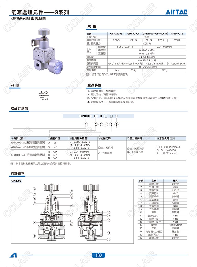 詳細信息 GPR20006L,GPR20006M,GPR20006H,GPR30008L,GPR30008M,GPR30008H,AIRTAC調(diào)壓閥