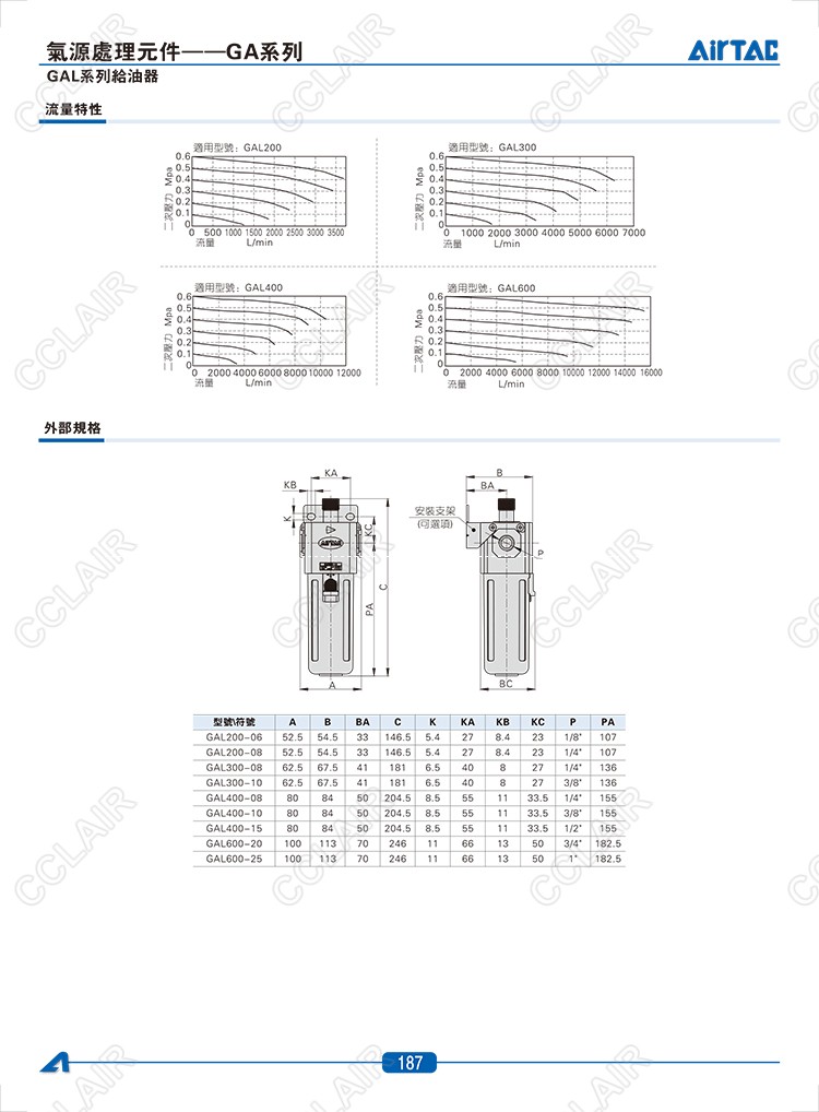 GAL200-06,GAL200-08,GAL300-08,GAL300-10,GAL400-08,GAL400-10,AIRTAC給油器