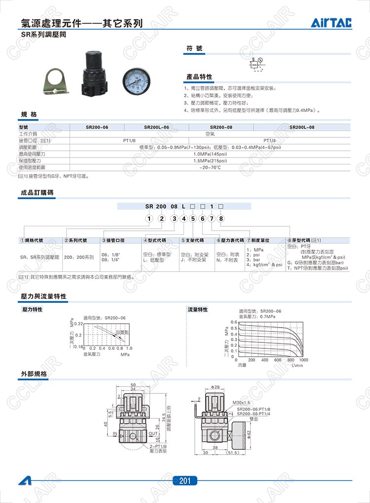 SR200-06,SR200L-06,SR200-08,SR200L-08,AIRTAC調(diào)壓閥