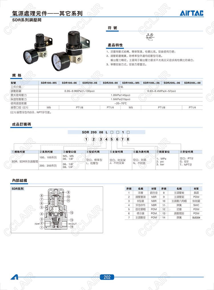 SDR100-M5,SDR100-06,SDR200-06,SDR200-08,SDR100L-M5,AIRTAC調(diào)壓閥
