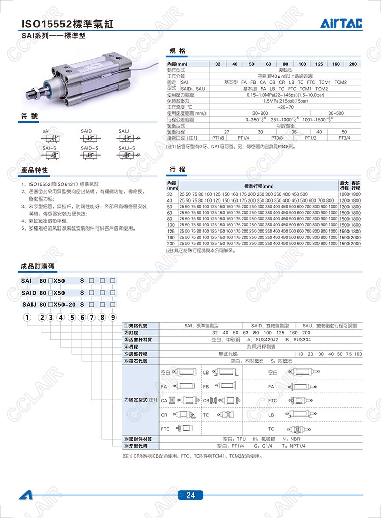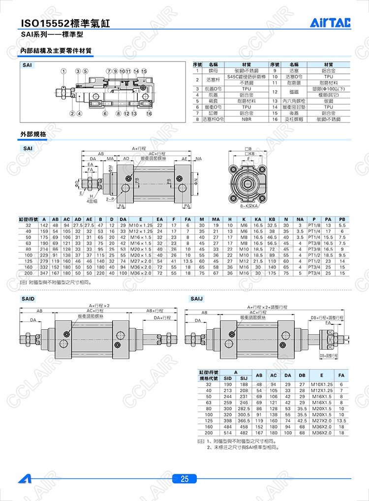 SAI32*25,SAI32*25-S,SAID32*25,SAID32*25-S,SAIJ32*25,SAIJ32*25-S,AIRTAC亞德客標準型氣缸