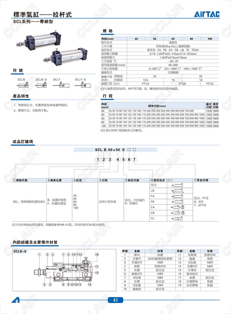 SCLB40*25,SCLB40*25-S,SCLB40*50,SCLF40*25,SCLF40*25-S,SCLF40*50,AIRTAC亞德客標準氣缸-拉桿式