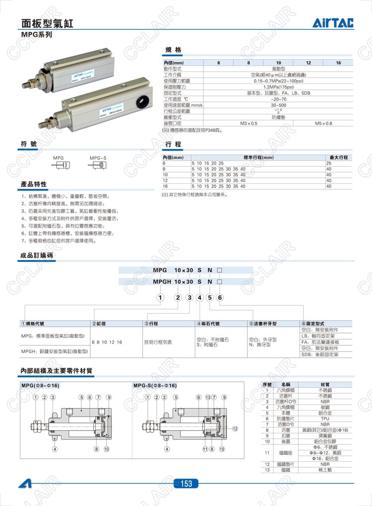 MPG6*5,MPG6*5-S,MPG6*10,MPGH6*5,MPGH6*5-S,MPGH6*10,AIRTAC亞德客面板型氣缸