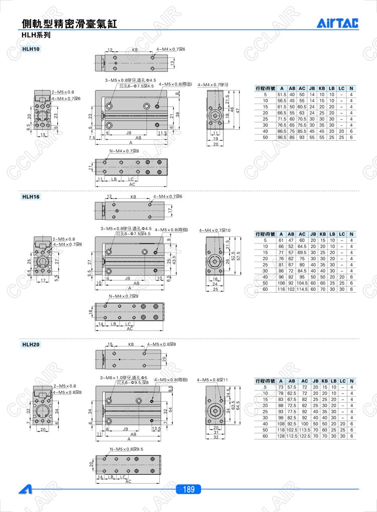 詳細信息 HLH6*5-S,HLH6*10-S,HLH6*15-S,HLH6*20-S,HLH6*25-S,AIRTAC亞德客側(cè)軌型精密滑臺氣缸