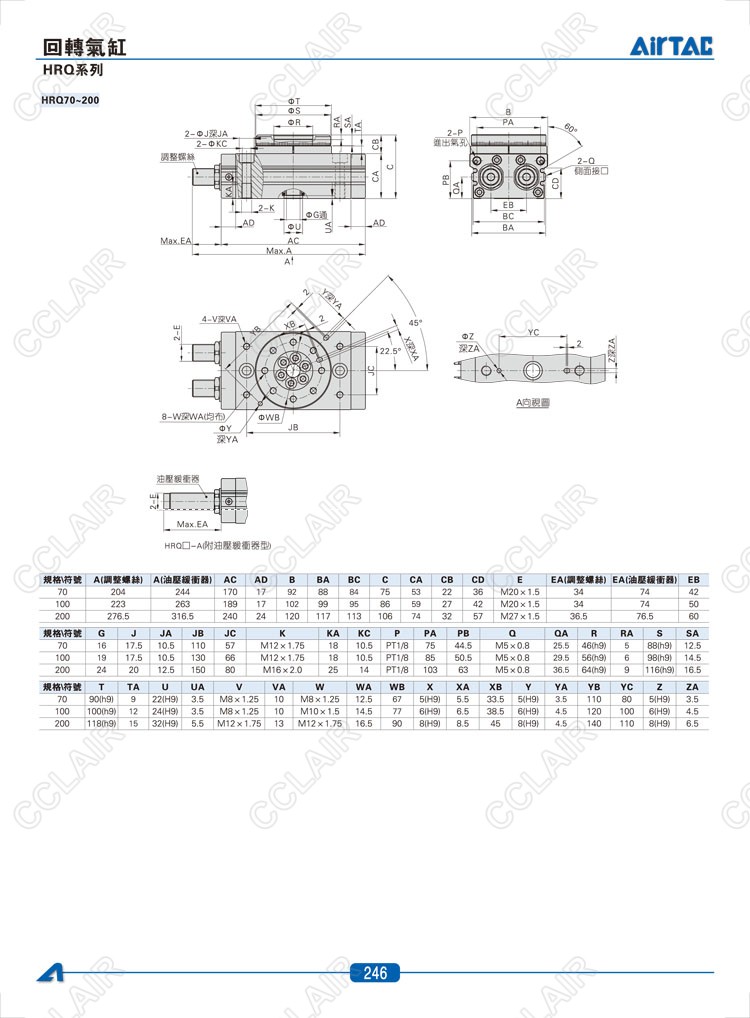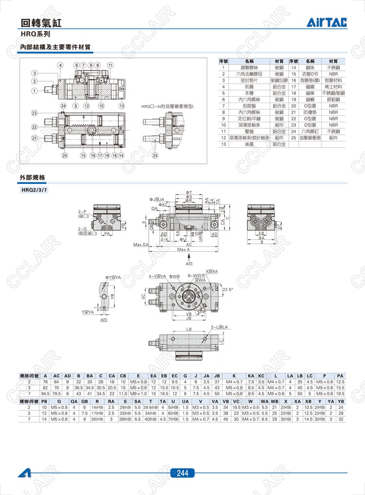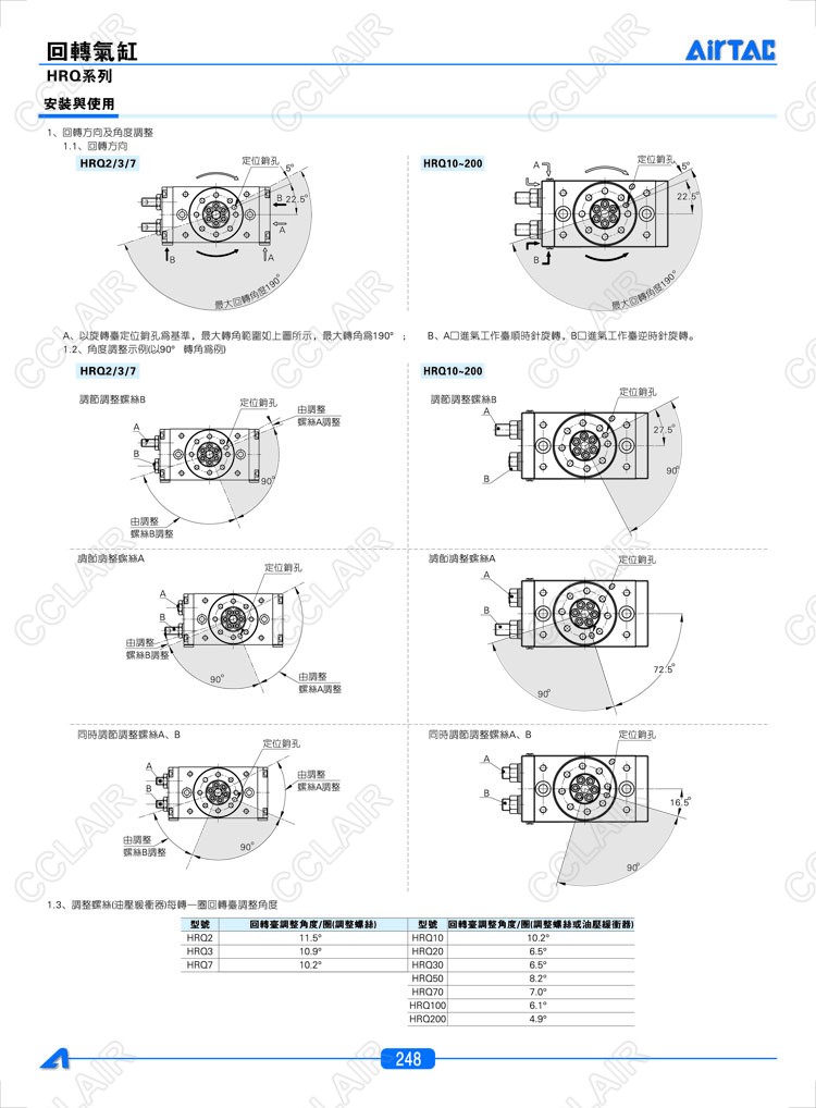 亞德客AIRTAC,HRQ2,HRQ3,HRQ7,HRQ10,HRQ10A,HRQ20,HRQ20A,HRQ30,HRQ30A,回轉(zhuǎn)氣缸