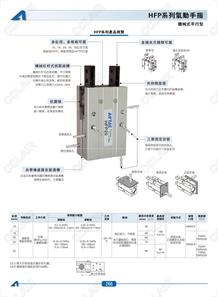 詳細(xì)信息 亞德客AIRTAC,HFP10,HFP10-N,HFP16,HFTP16-N,HFTP20,HFTP20-N,氣動手指