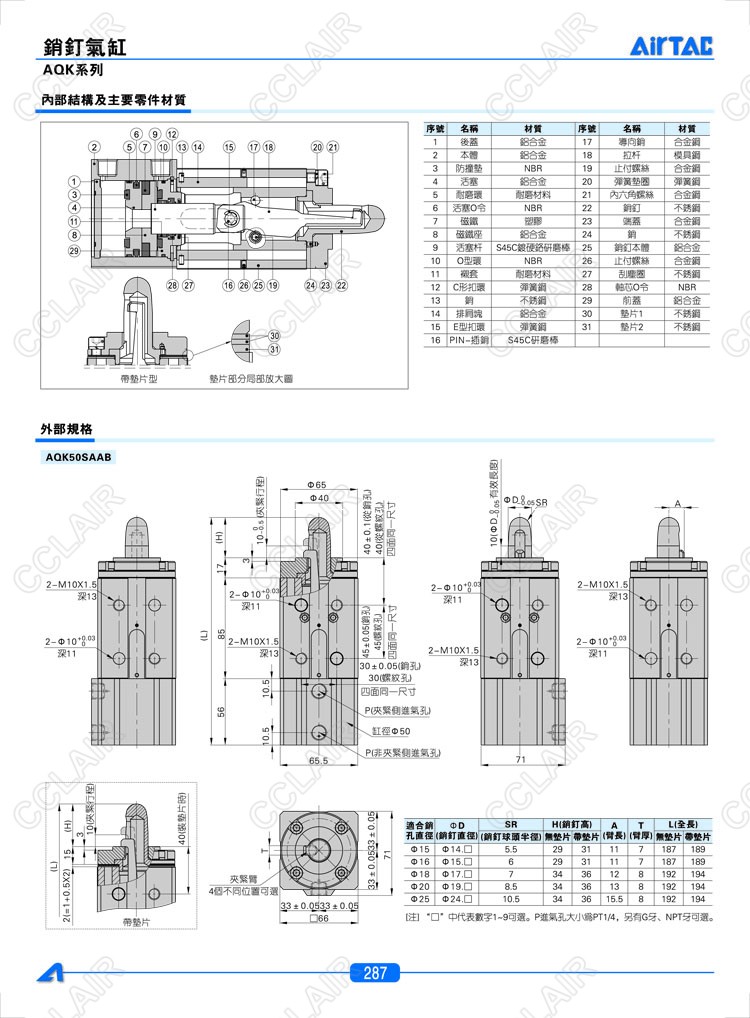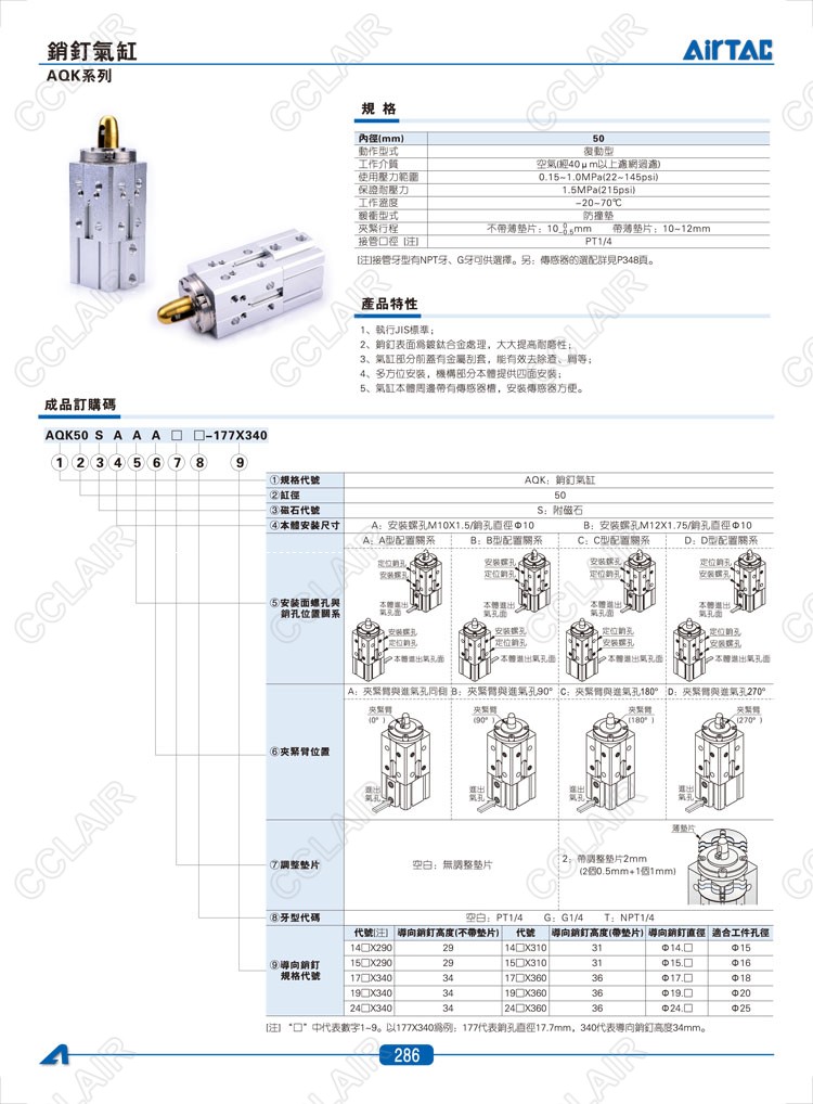亞德客AIRTAC,AQK50SAAA,AQK50SAAB,AQK50SAAC,AQK50SBAA,AQK50SBAB,AQK50SBAC,銷釘氣缸