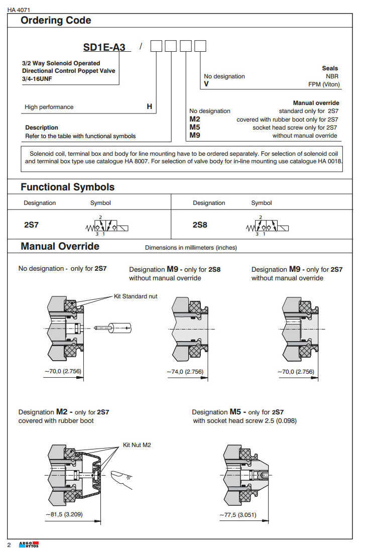 SD1E-A3/H2S7M2,SD1E-A3/H2S7M5,SD1E-A3/H2S7M9,SD1E-A3/H2S8M2,SD1E-A3/H2S8M5,SD1E-A3/H2S8M9,ARGO電磁方向控制閥