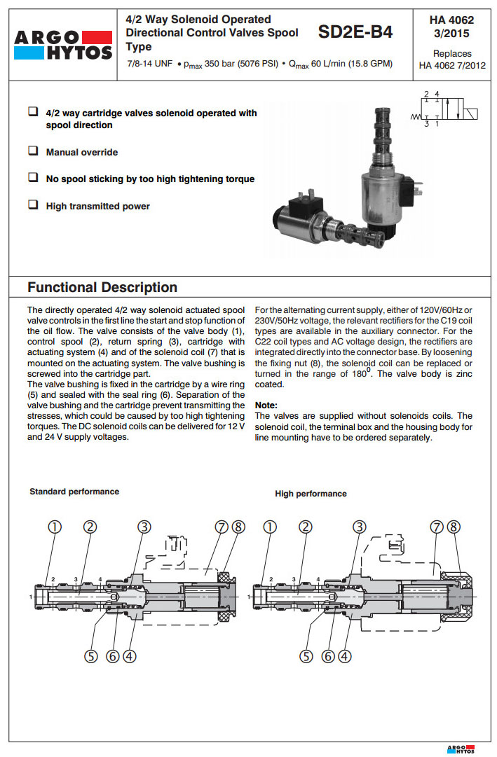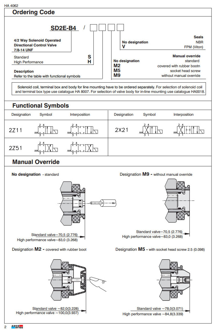 SD2E-B4/S,SD2E-B4/H,SD2E-B4/H2Z51M5,SD2E-B4/S2Z11M2,SD2E-B4/H2Z51M9,ARGO電磁方向控制閥閥芯