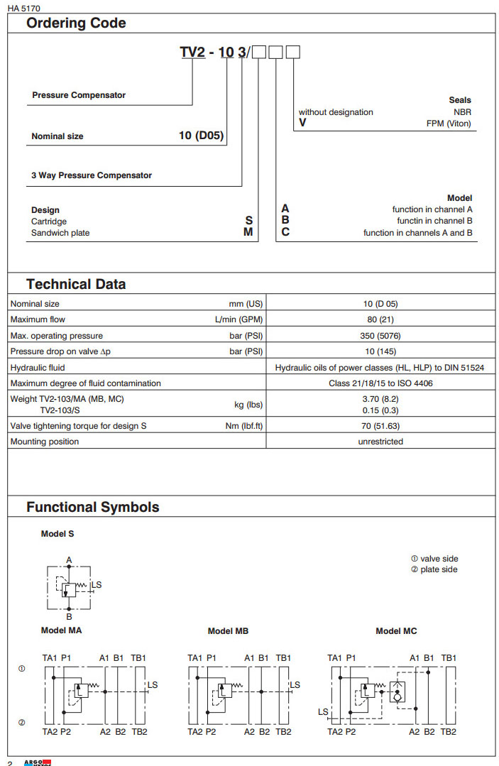首頁 > 產(chǎn)品&解決方案 > TV2-103/S,TV2-103/MA,TV2-103/MB,TV2-103/MC,ARGO 3路壓力補(bǔ)償器