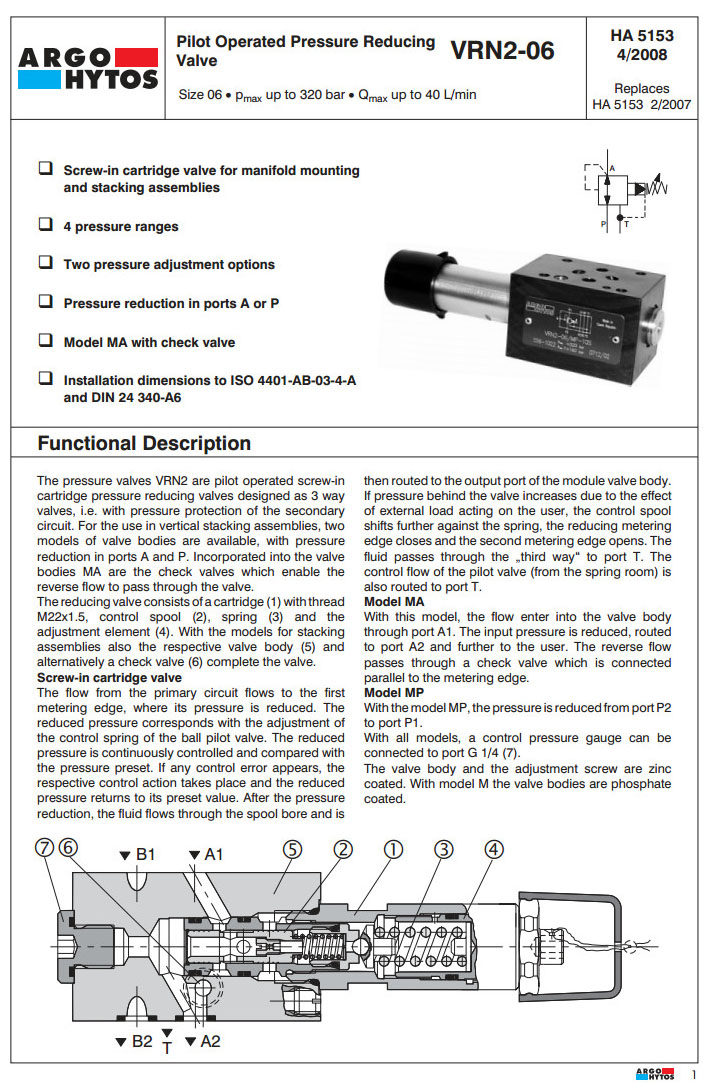 VRN2-06/S-10S 15997200,VRN2-06/S-21S 15997500,VRN2-06/MP-10S 15998400,VRN2-06/MP-21S 15999000,ARGO先導(dǎo)式減壓閥