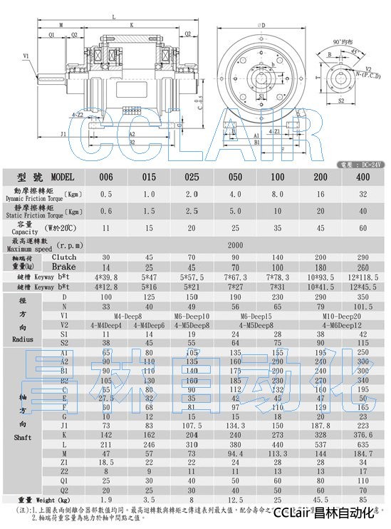 EFWL-T-006,EFWL-T-015,EFWL-T-025,干式單板雙離合煞車組(出軸式)